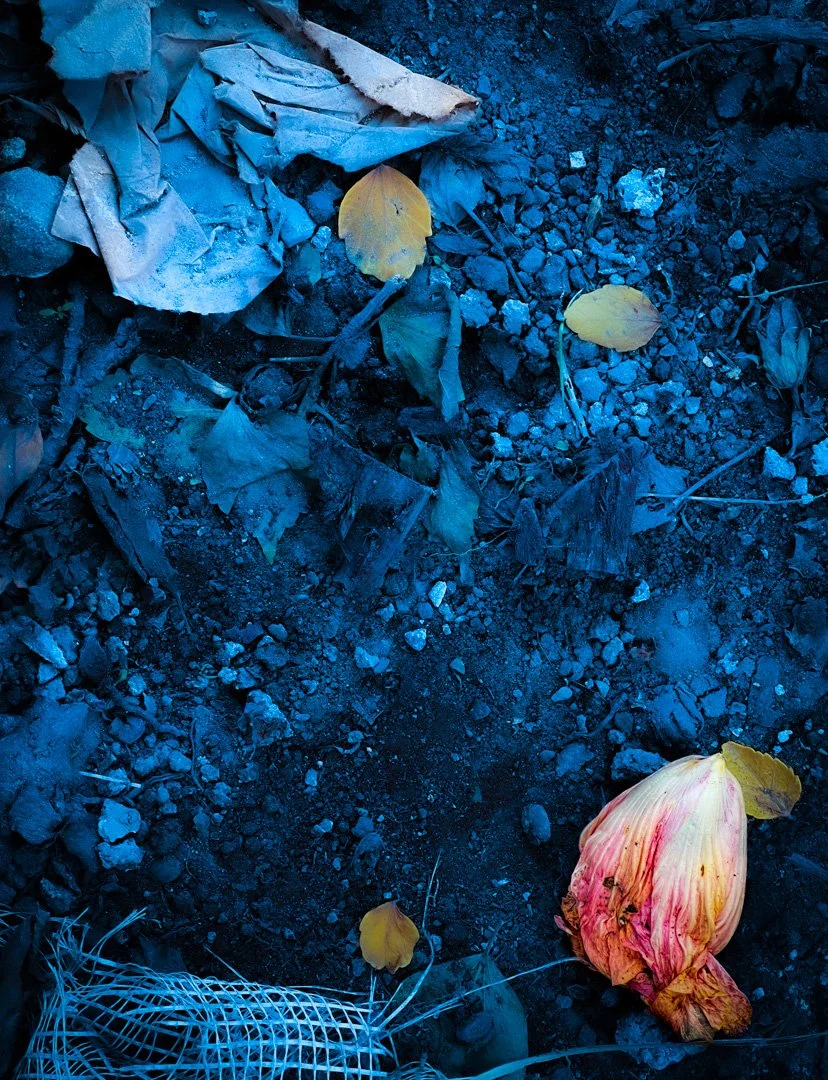 The project took root during the renovation of my house—walls stripped back, floors lifted, everything in flux. Outside, the garden offered its own construction site: petals scattered like debris, stems collapsing under their own weight. Photographing those fallen blooms became a counter-renovation—an unplanned record of things coming apart even as something new was taking shape.
